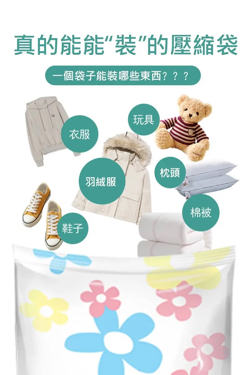4分鐘前掛式真空壓縮袋推薦,輕鬆節省衣櫃空間 - 【買5送5】尺寸任選★贈電動抽氣機★ NT$1299