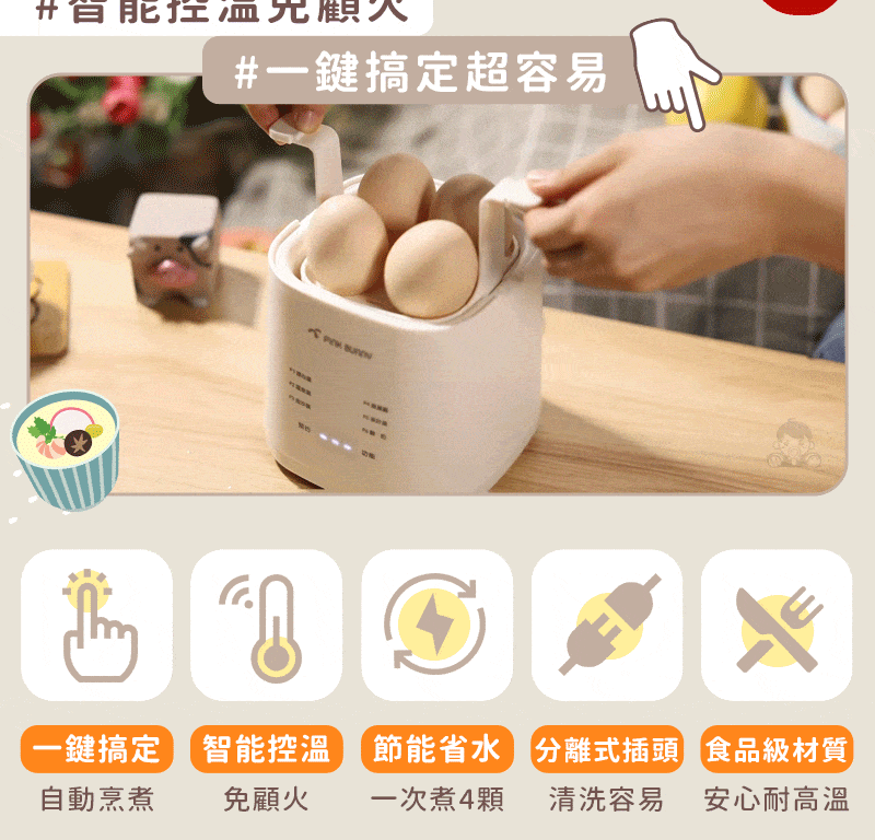 5分鐘前Pink Bunny智能煮蛋機智能控溫烹煮,營養美味輕鬆上桌 - Pink Bunny智能煮蛋機1入組 NT$1090