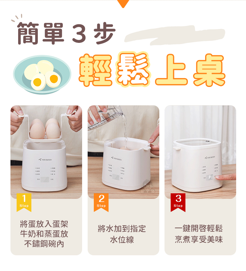 20分鐘前Pink Bunny智能煮蛋機智能控溫烹煮,營養美味輕鬆上桌 - Pink Bunny智能煮蛋機1入組 NT$1090